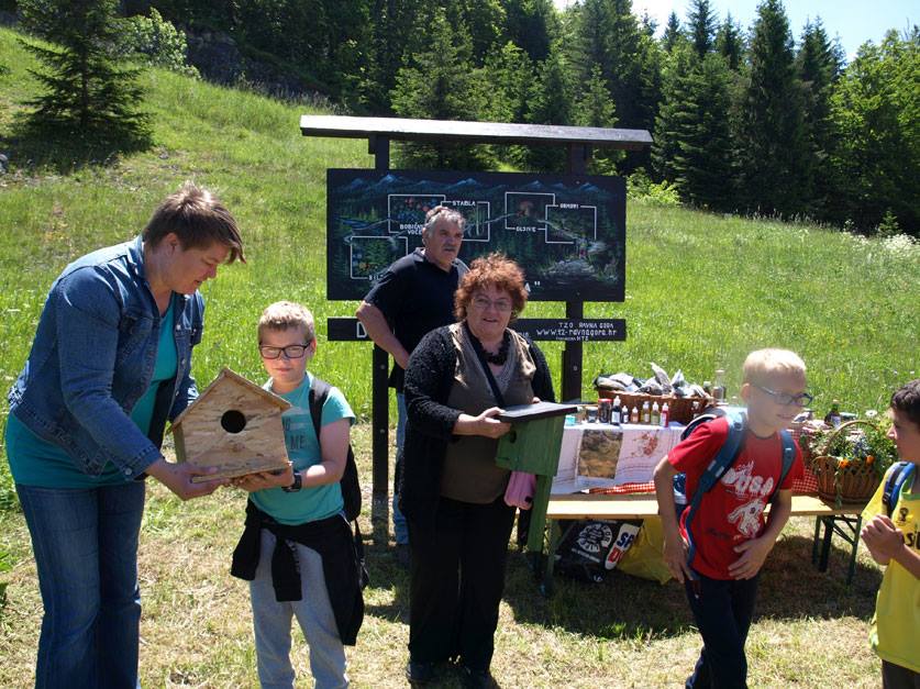 RAVNA GORA -Ravnogorski osnovci, učenici drugog i trećeg razreda prvi su prošetali novootvorenom poučnom stazom Plodovi gorja koja se nalazi na području Suhog vrha u Ravnoj Gori. Osnovce je stazom proveo travar Milan Zemljić upoznajući ih tom prilikom sa biljnim bogatstvima goranskih šuma a oni su zauzvrat poklonili kućice za ptice koje će biti postavljene na uređenoj poučnoj stazi . Otvorena poučna staza Plodovi gorja rezultat je zajedničkog projekta ravnogorske Udruge Plodovi gorja i Turističke zajednice Općine Ravna Gora pokrenut prošle godine a koje je sredstvima potpore sufinancirala i Hrvatska turistička zajednica. Poučna staza opremljena je informativnim tablama o stablima, gljivama, ljekovitom bilju, bobičastom voću, bilju i grmovima, te putokazima za lakše snalaženje. U nastavku realizacije projekta u planu je i uređenje vidikovca i učionice u prirodi. Uz osnovce koji su imali tu čast prvi proći i svečano otvoriti poučnu stazu, pozvani su svi zaljubljenici u prirodu da je svakako posjete i kroz edukativne table upoznaju šumska bogatstva ravnogorskog kraja.