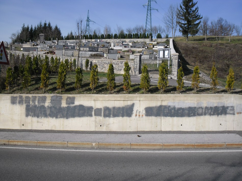 Tenzije dižu i kompliciraju suživot oni koji razbijaju ploče, a ne oni koji dižu glas protiv takvog vandalizma. Ovo piskaranje po zidu pored groblja je krajnje primitivan čin, i svatko iole normalan zna na što asocira ta poruka.