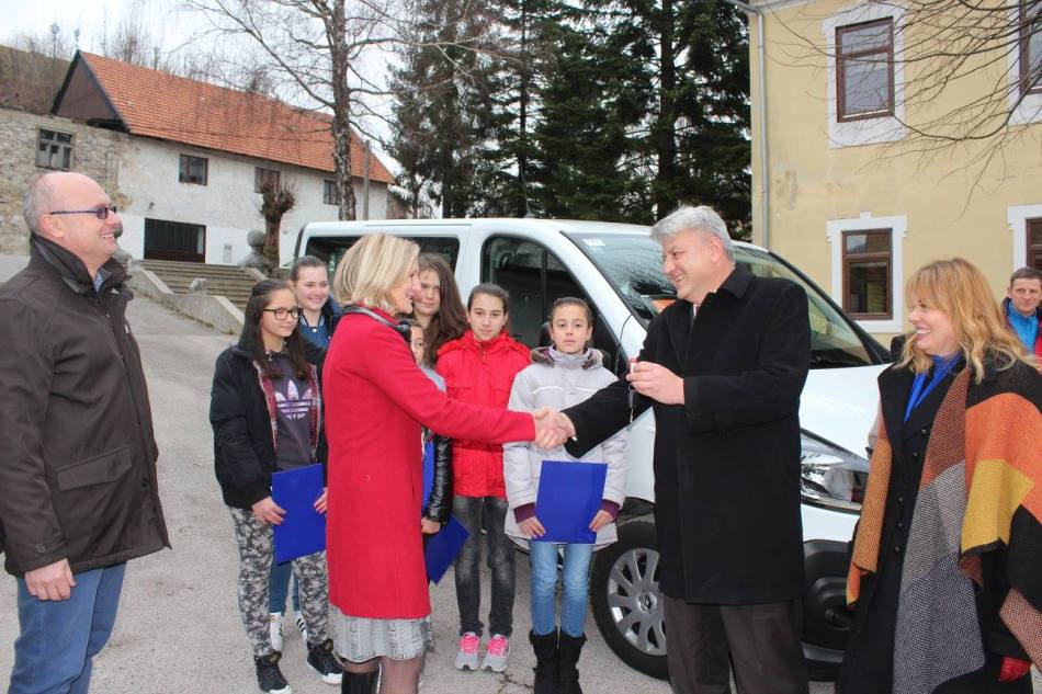 LOKVE – Učenici putnici lokvarske osnovne škole dobili su od Županije novo kombi vozilo. Na upriličenoj svečanosti uz prigodni program učenika, ravnateljici OŠ Rudolfa Strohala Lokve Borki Kezele-Kanjer ključeve kombija vrijednog gotovo 200 tisuća kuna uručio je župan Zlatko Komadina. “Ovom investicijom za djecu ćemo imati bolje i sigurnije uvjete, a i dužni smo djecu voziti u školu. Mislim da je ovaj način bolji i najsigurniji jer želimo da djeca idu u školu tamo gdje stanuju”, poručio je tom prilikom župan Zlatko Komadina kojem se na donaciji zahvalio i načelnik Općine Lokve Toni Štimac ističući da time Županija pokazuje razumijevanje važnosti opstanka škola bez obzira na broj učenika jer, kaže, kada se gasi škola, automatski se gasi i selo. Od 59 učenika lokvarske škole prijevoz kombijem koristi 4 osnovaca nižih razreda na relaciji Homer-Zajez-Lokve koji će se sada u novom vozilu sigurnije voziti do škole a time će se ostvariti i znatna ušteda u odnosu na trošak prijevoza ugovorenim prijevoznikom, poručeno je na primopredaji. Zbog složenosti organizacije prometa na području Gorskog kotara, velike udaljenosti pojedinih naselja i loše prometne povezanosti, od 2002. godine Primorsko-goranska županija školama Gorskog kotara nabavlja školska kombi vozila, u pravilu se nabavlja svake godine po jedno vozilo osim prošle kada su dodijeljena dva i to školama u Vrbovskom i Čabru. Tako je do sada Županija za svih deset osnovnih škola na području Gorskog kotara ukupno donirala 18 kombi vozila ukupne vrijednosti 3.073.324,80 kuna, kojima se u ovoj školskoj godini koristi 183 goranska osnovca.