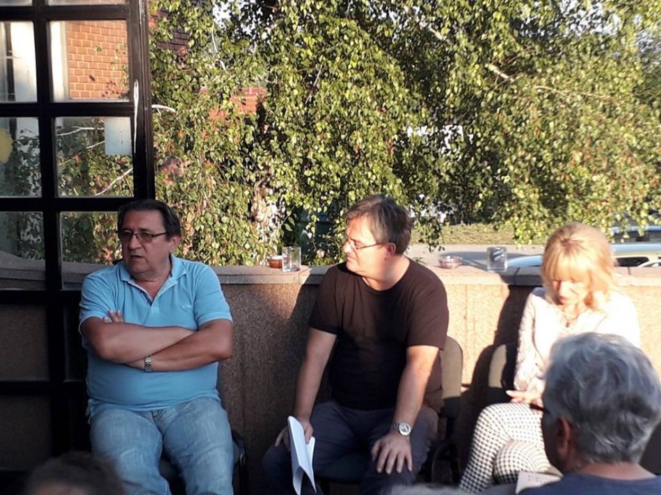 Veljko Đorđević, Zoran Simić i Marijana Braš na književnoj večeri u Vrbovskom