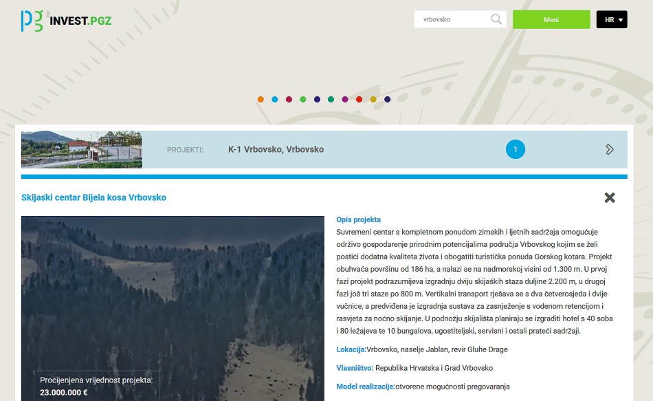 GORSKI KOTAR – Goranski sportsko rekeracijski centri i poslovne zone dio su liste razvojnih projekata s područja cijele Primorsko-goranske županije koji trebaju investitore a koja se sada nalazi na jednom mjestu, internet stranici www.invest.pgz.hr. Stranicu je pokrenula Primorsko-goranska županija a ona predstavlja online bazu gotovo 120 investicijskih projekata kojom se potencijalnim domaćim i stranim ulagačima pružaju informacije o samom projektu, njegovoj lokaciji, vlasništvu, modelima realizacije te daje popis pripremljene dokumentacije i kontakt podatke. Predstavljeni investicijski projekti su od državnog, regionalnog i lokalnog značaja te projekti privatnih investitora, prevedeni na tri strana jezika – engleski, njemački i talijanski te se sa detaljnim opisima mogu preuzeti sa web stranice u PDF formatu. Svim zainteresiranima koji imaju projekt za koji tražite ulagača ili strateškog partnera i žele da se on nalazi na toj web stranici, na raspolaganju je kontakt razvoj@pgz.hr .