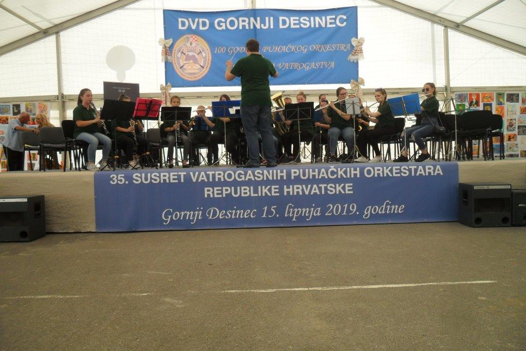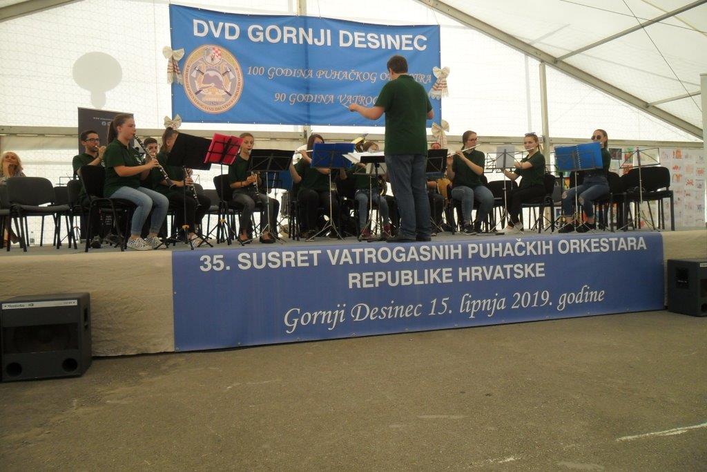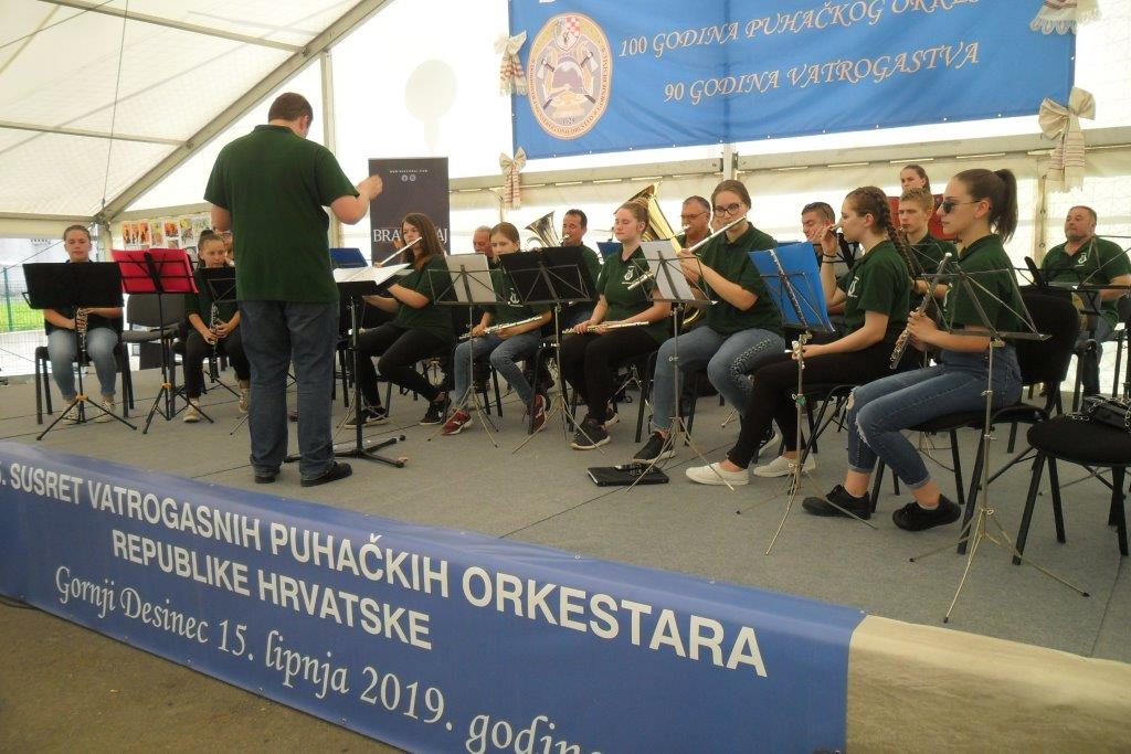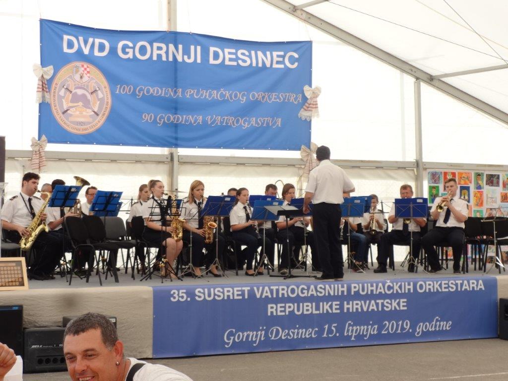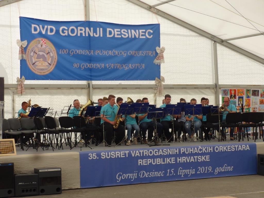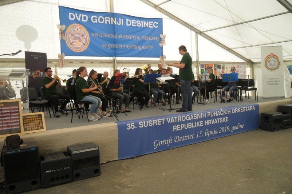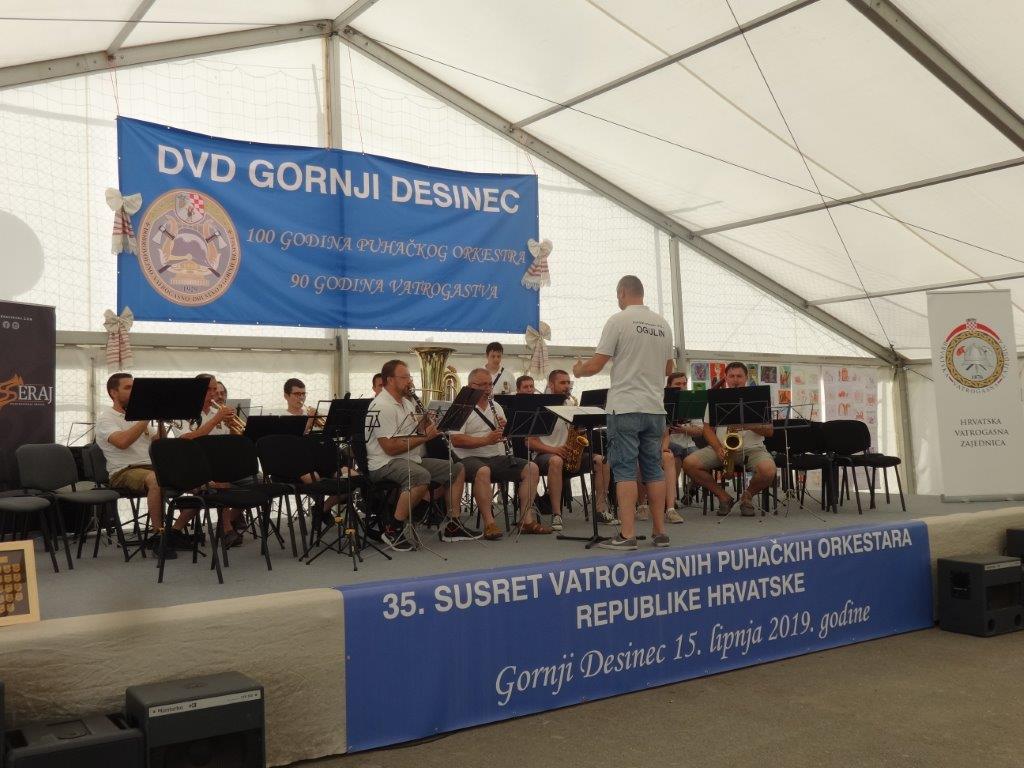 VRBOVSKO – Nakon Jajca Puhački orkestar DVD-a Vrbovsko bio je u gostima u Gornjem Desincu na 35. susretu Puhačkih orkestara Republike Hrvatske. Glazbena svečanost koju je organizirala Hrvatska vatrogasna zajednica održana je povodom obilježavanja 100-te obljetnice puhačkog orkestra DVD-a Gornji Desinec i 90 godina desinečkog vatrogastva. Na susretu je nastupilo 17 orkestara te gosti iz Crne Gore Tamburaškog ansambla Pljevlje. Vrboščanski orkestar svoj glazbeni repertoar na koncertu u Gornjem Desincu predstavio je pod ravnanjem novog dirigenta prof. Denisa Kezelea iz Delnica.