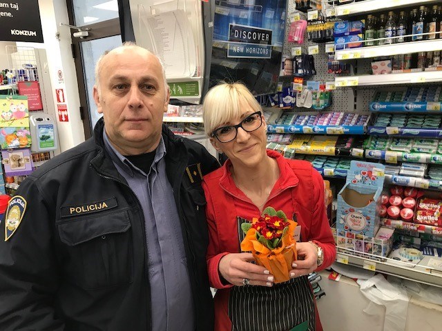VRBOVSKO – Vrbovščanski policajci jučer su na Dan žena posjetili Vrbovščanke na njihovim radnim mjestima i u znak pažnje darovali im cvijeće. Čestitku za Dan žena – 8. Mart i cvjetni dar uručili su kontakt policajci iz Policijske postaje Vrbovsko Ivica Brozović i Mladen Majetić te ih tom simbiličnom gestom ugodno iznenadili i obradovali. Uz vrbovščanske policajce prigodnom obilježavanju Dan žena na području Policijske uprave primorsko-goranske pridružile su se i kolege u Rijeci, Rabu i Opatiji.