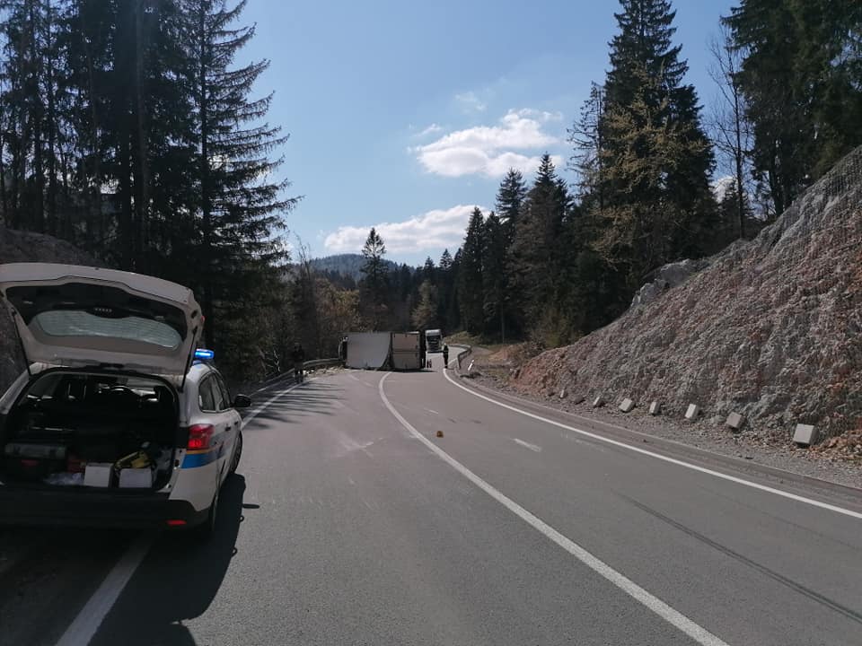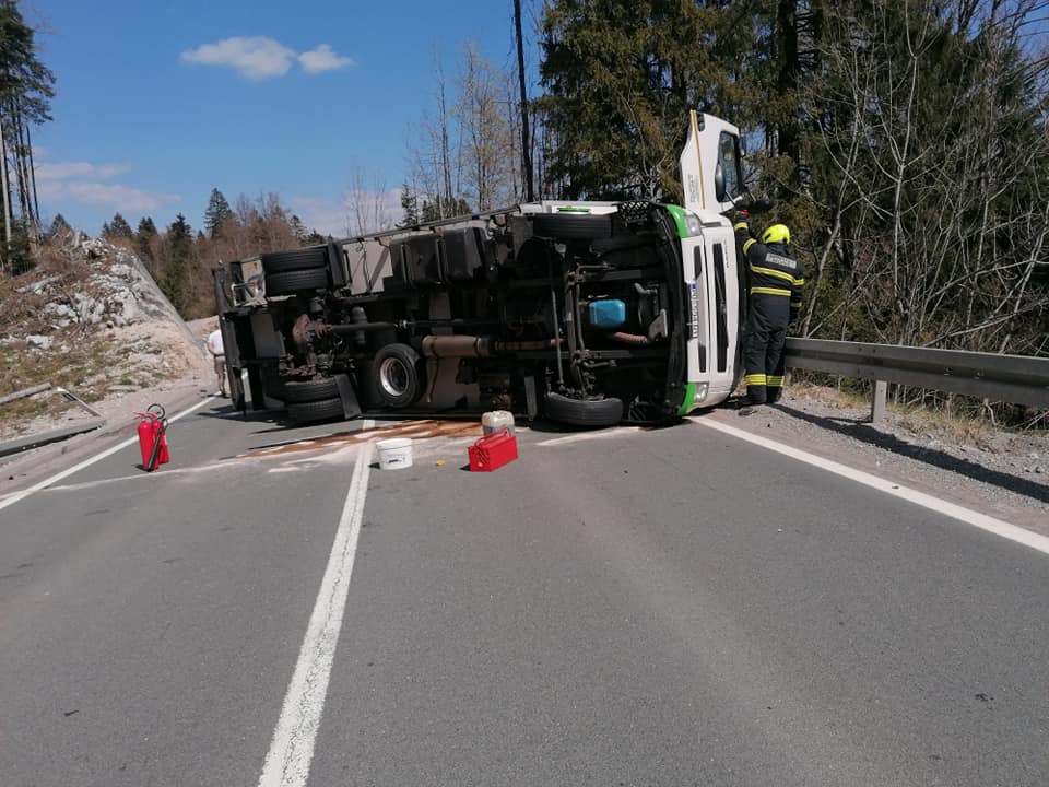 DELNICE – Jučer se na staroj prometnici Rijeka-Zagreb kod Delnica oko 15 sati dogodila prometna nezgoda. Došlo je do prevrtanja teretnog vozila prilikom čega je vozač zadobio lakše tjelesne ozljede. Na mjesto prometne nesreće pozvani su i delnički vatrogasci koji nisu trebali intervenirati na izvlačenju unesrećene osobe jer je vozač sam izašao iz vozila nego su radili na ispumpavanju goriva koje je curilo iz oštećenog rezervoara i sanaciji kolnika.