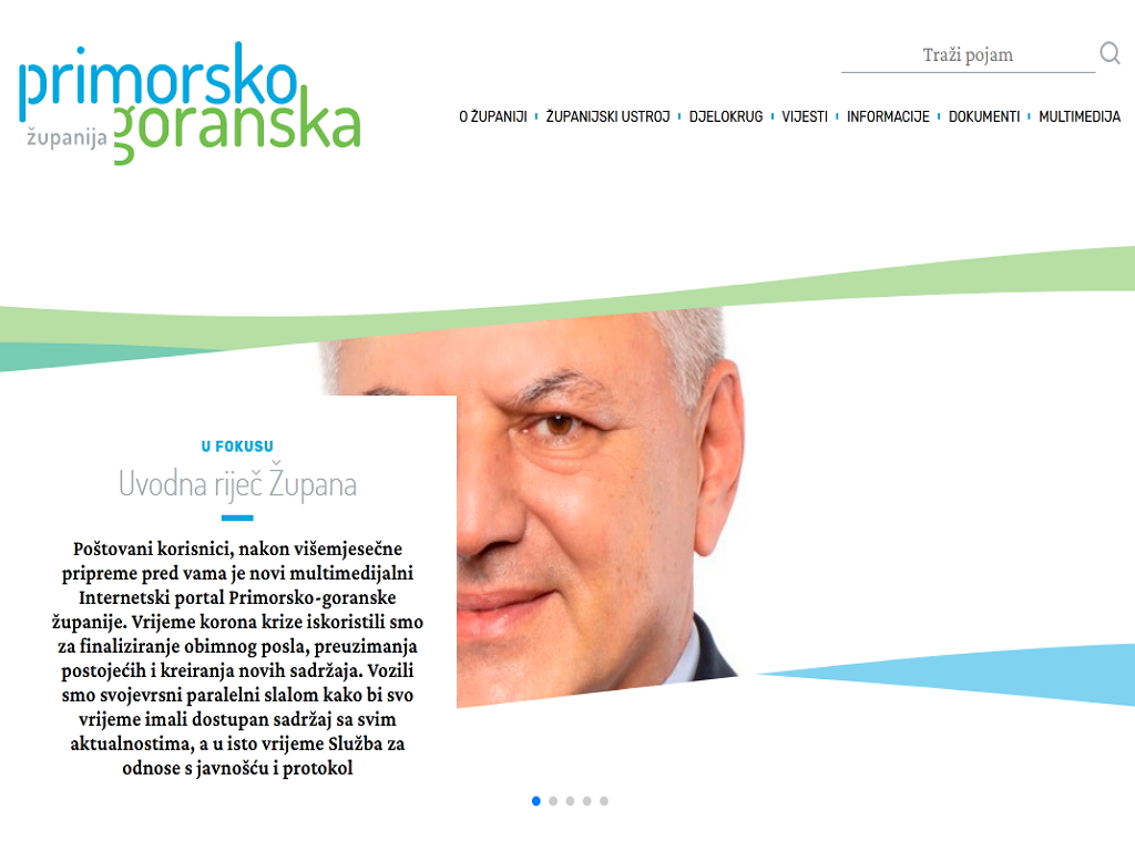 GORSKI KOTAR – Službena internet stranica Primorsko-goranske županije dobila je novi izgled. Služba za odnose s javnošću i protokol Ureda Županije radili su na pripremi novog WEB-a, bržeg, preglednijeg i optimiziranijeg za pregled na svim platformama, prilagođenog za plasiranje multimedijalnih zapisa te modernog vizualnog dizajna a u izradi je pomogla tvrtka, odabrana na natječaju za izradu novog WEB rješenja. Primarni cilj izrade novog multimedijalnog Internetskog portala PGŽ-e, pokrenutog prije deset godina, je dostupnost i transparentnost relevantnih informacija iz rada dužnosnika, predstavničkog i upravnih tijela Županije, kao i županijskih ustanova, s mogućnosti jednostavnijeg i bržeg pregleda. Konačno rješenje bazirano je na WordPressu i usklađeno s vizualnim identitetom Primorsko-goranske županije a sastoji se od 117 stranica i 16 baza podataka. WEB radi s najčešće korištenim Android, IOS i PC platformama, optimiziran je za prikaz po najčešćim vrstama korisnika (sugrađani, mediji, posjetitelji, zaposlenici) te omogućuje lokalizaciju na neograničeni broj jezika (u pripremi engleski i talijanski). Službenu internet stranicu Primorsko-goranske županije pogledajte OVDJE.