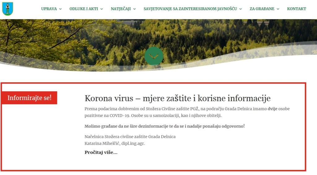Da je virus u Gorskom kotaru može se saznati na službenim stranicama Grada Delnica
