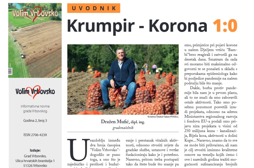 Tako Mufić gotovo svakodnevno iskače iz stranica nacionalnih novina, kočoperi se u „zabavnom“ talk showu lokalne televizije a sve to revno prenosi službena stranica Grada Vrbovskog . Kruna njegove medijske ekspanzije je luksuzni tiskani polugodišnjak Volim Vrbovsko (službeno gradsko glasilo) u kojem sam sebi daje ogromne intervjue te si čak pridaje nadnaravne moći poput pobjede nad korona virusom uzgojem tona i tona krumpira u gradskom angažmanu.