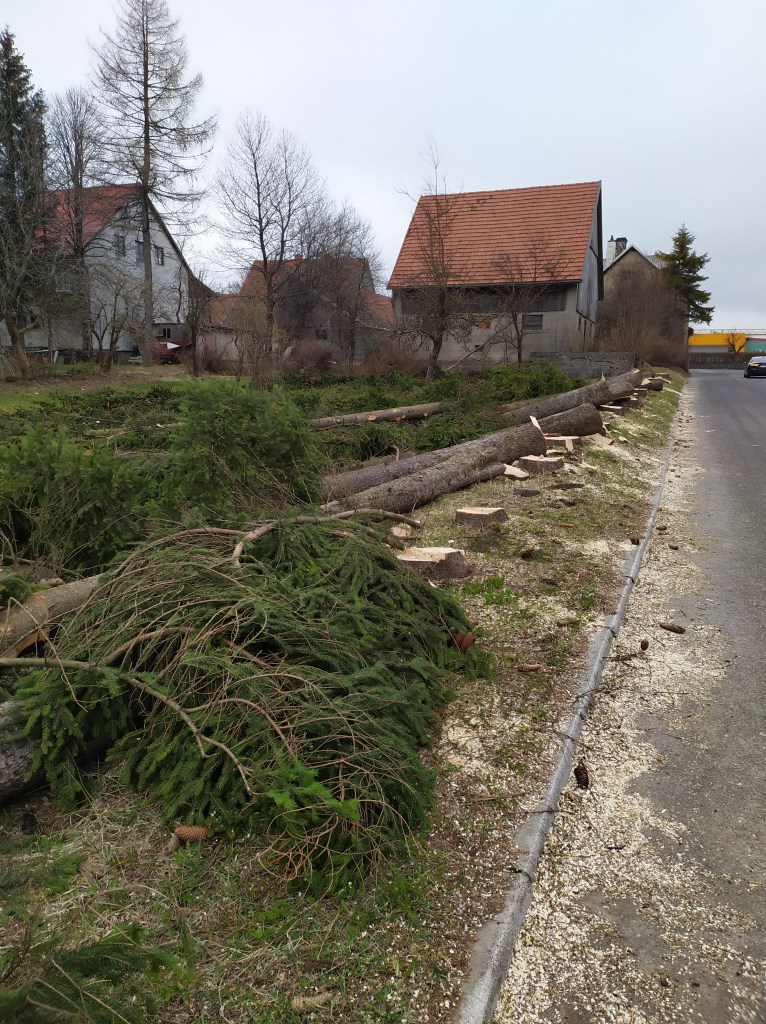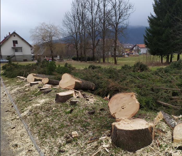 RAVNA GORA – Drvored smreka koji je krasio vizuru Vatrogasne ulice u Ravnoj Gori srušen je. Prizor oborenih stabala neugodno je iznenadio neke mještane koji su nam se obratili kako bi izrazili svoje nezadovoljstvo tim postupkom pitajući se zašto je to učinjeno?! – Iznenađena sam prizorom još jednog masakra nad drvoredom smreka, ovaj put preko puta Vatrogasnog doma u Ravnoj Gori. Sigurno postoji pametno objašnjenje zašto je to učinjeno, no nije oku ugodno. Posljedica je da će Gorane otpuhati vjetrovi jer od Gorskog kotara rade Ćelavu goru, reakcija je koju nam je poslala naša čitateljica iz Ravne Gore. Tragom objašnjenja zašto je to učinjeno upit smo poslali nadležnima u Općini Ravna Gora gdje nam je načelnik Mišel Šćuka kratko odgovorio da je drvored bio u privatnome vlasništvu i sukladno tome Općina Ravna Gora nema pravo odluke na tom dijelu zemljišta.