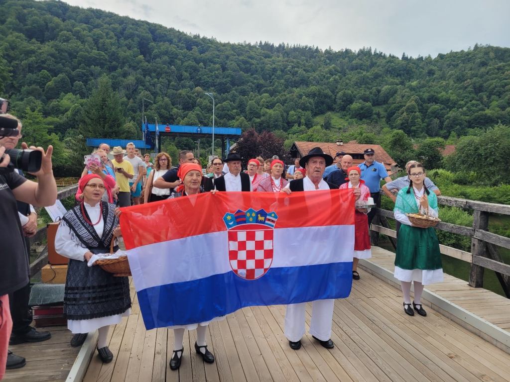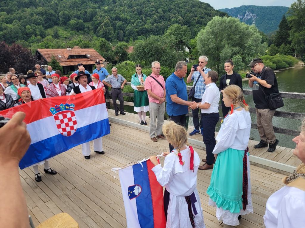 BLAŽEVCI – Na hrvatsko-slovenskom graničnom prelazu Blaževci – Sodevci, jučer su se sastali predstavnici Grada Vrbovskog i Općine Črnomalj. Svečani susret koji su predvodili gradonačelnik Vrbovskog Dražen Mufić i načelnik Črnomlja Andrej Kavšek upriličen je na osmu obljetnicu ulaska Hrvatske u Europsku uniju kao i završetak, prošle godine, dogovorene zajedničke obnove graničnog mosta koji preko Kupe spaja vrboščanske Blaževce i črnomaljske Sodevce. Na prijateljskom susretu čelnici susjednih lokalnih samouprava su naglasili važnost održavanja dobrih odnosa hrvatske i slovenske strane, posebice lokalnog stanovništva, čija se granica nikada nije razdvajala. Svečanost su nastupima uveličali KUD Frankopan Severin na Kupi i KS Stari trg kod Kolpe.