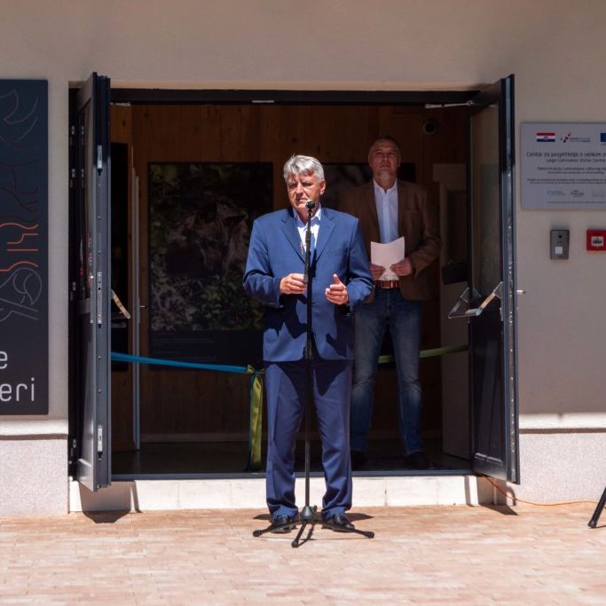 Centar je otvorio župan Zlatko Komadina koji je tom prilikom izjavio – Čak 75 posto površine naše županije dio je ekološke mreže Natura 2000. U plavom dijelu županije na Cresu imamo Centar za posjetitelje i oporavilište za bjeloglave supove Beli a sada smo u njezinu zelenom dijelu otvorili Centar za posjetitelje „Velike zvijeri“.