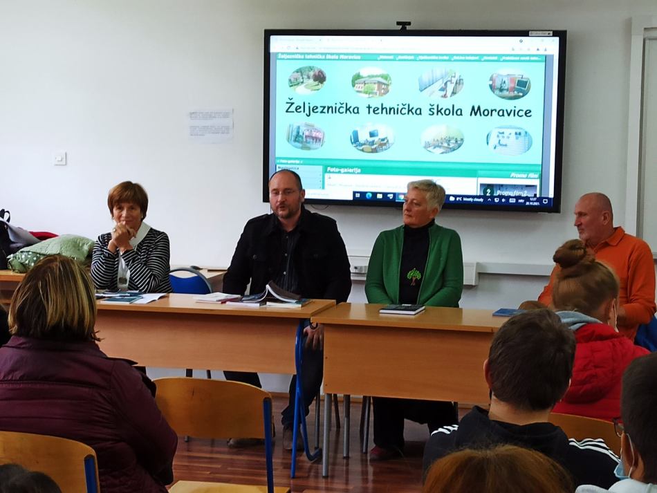 MORAVICE – Pjesnici, članovi Društva hrvatskih književnika, predstavili su se moravičkim osnovcima i srednjoškolcima. U organizaciji Gradske knjižnice I. G. Kovačića Vrbovsko a u suradnji s etno udrugom Prepelin’c iz Delnica u sklopu 10. književnih susreta “Od gora do mora” povodom Mjeseca hrvatske knjige u Moravicama su gostovali Diana Burazer, Marina Čapalija, Robert Mlinarec i Davora Grgurić. Književnici su proveli po jedan školski sat s učenicima PŠ N. Tesla Moravice a zatim i s učenicima ŽTŠ Moravice na kojem su čitali i razgovarali o poeziji.