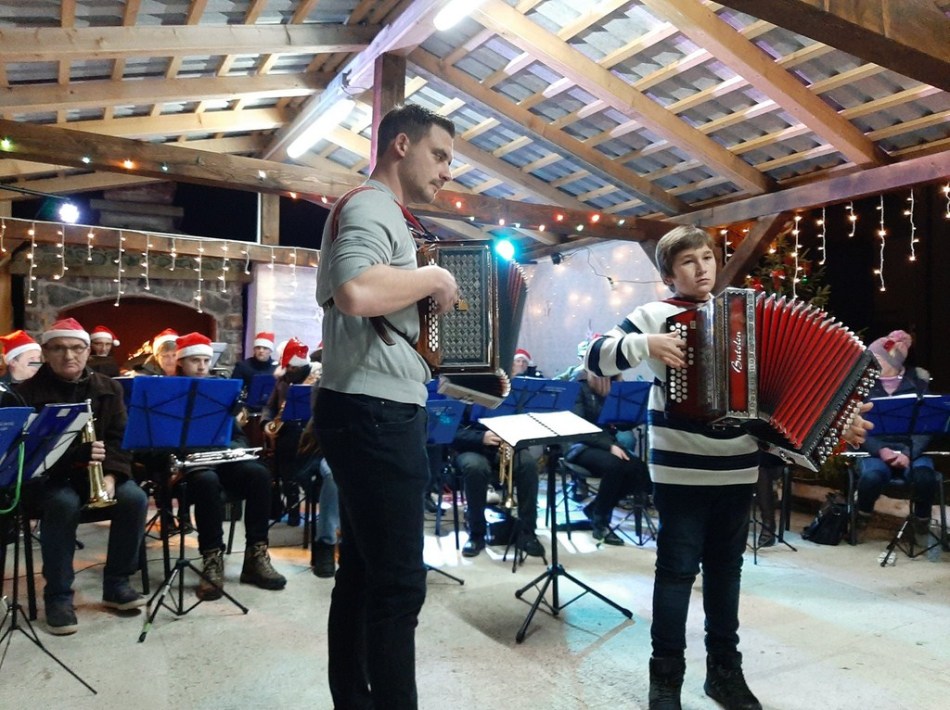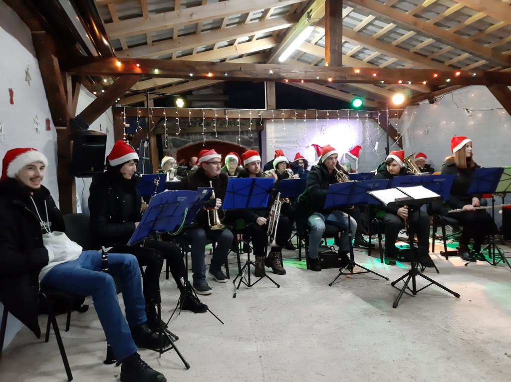 ČABAR – Za svoje sugrađane i ove godine Puhački orkestar Grada Čabra održao je prigodni Božićno-novogodišnji koncert. Za razliku od prijašnjih godina zbog nemogućnosti organiziranja u zatvorenom prostoru ove je održan na otvorenom odnosno natkrivenom dijelu dvorišta župnog dvora u Čabru. Glazbenici Puhačkog orkestra sretni su što su unatoč ograničenjima ipak održali koncert uputivši zahvalu župniku na ustupljenom prostoru kao i svima koji su ih svojim dolaskom podržali i uveličali događanje.