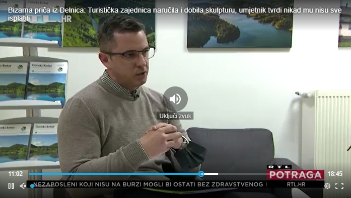 DELNICE – Delnice su u središtu novog skandala. Novu aferu otkrila je RTL Potraga koja u svojoj repotraži obrađuje priču o tome kako je Turistička zajednica Delnica naručila i dobila skulpturu a umjetnik koji ju je izradio tvrdi da mu nikad nisu sve isplatili. Ukratko, radi se narudžbi skulpture crnoluškog Pesnika – zakrabuljenog mladića, koji je izradio umjetnik iz Prezida Damjan Kovač. Narudžba je dogovorena s tadašnjim predsjednikom Turističke zajednice Grada Delnica a sadašnjim predsjednikom TZ Gorski kotar Petrom Hrgom. Skulptura je u svibnju prošle godine postavljena u Crnom Lugu a svečano ju je otkrila tadašnja dogradonačelnica a sada aktualna gradonačelnica Katarina Mihelčić. Bizarnost u priči je da je umjetnik tražio 58 tisuća kuna a kad je napravio skulpturu netko je prepravio ugovor na manji iznos. Tako su se u samo tjedan dana Delnice našle u središtu čak dva skandala. Nakon početka tjedna i javnih optužbi u sumnju u namještanje natječaja delničkog komunalno društva, novi skandal o sumnji prepravljanje ugovora odnosno kazneno djelo krivotvorenja službene dokumentacije delničke Turstičke zajednice, otkriva RTL Potraga a članak i video pogledajte ovdje: