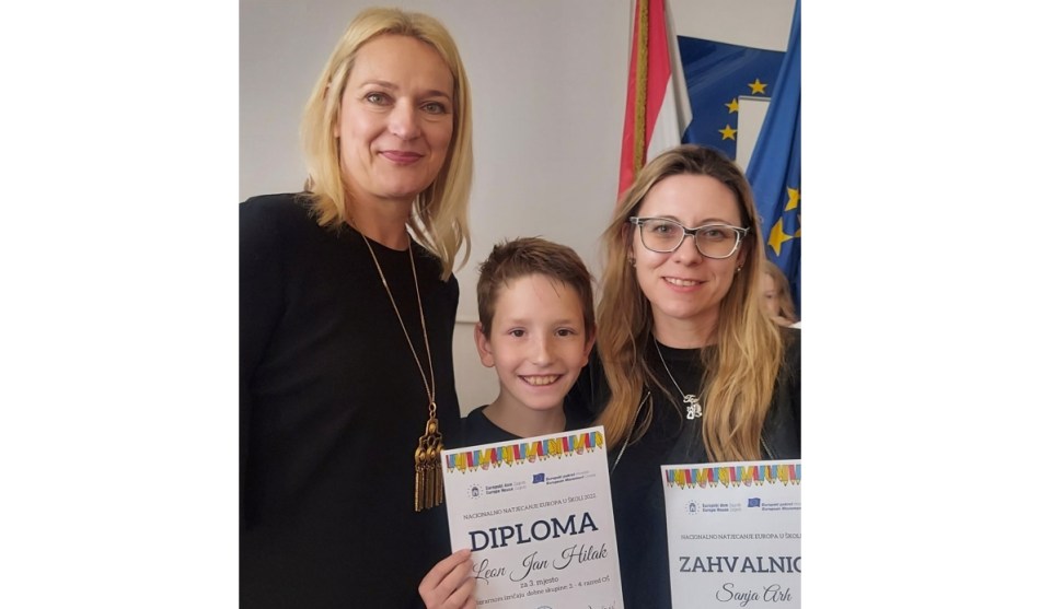 DELNICE – Učenik delničke osnovne škole, Leon Jan Hilak (4. b), osvojio je treće mjesto na Državnom natjecanju “Europa u školi”. Na tom natjecanju u organizaciji Europskog doma Zagreb i Europskog pokreta Hrvatska koje je ove godine održan pod naslovom Stvaramo održivu budućnost, delnički osnovac Leon Jan nagradu je osvojio za svoj literarni rad Pčele medarice u kategoriji literarni izričaj dobne skupine 3.- 4. razred osnovne škole. Nagrada za osvojeno treće mjesto uručena mu je na svečanoj dodjeli koju je primio u pratnji mentorice Sanje Arh.