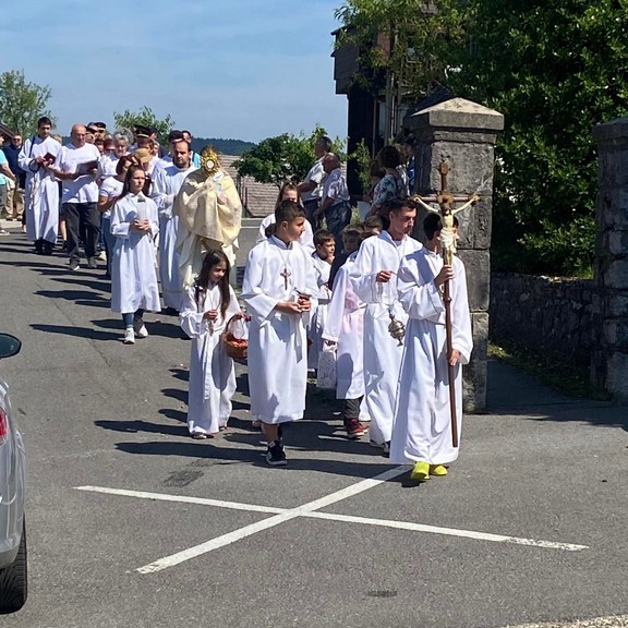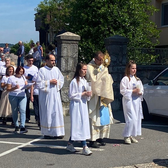 VRBOVSKO – Velikom procesijom vjernika danas je u Vrbovskom obilježen blagdan Tijelova. Brojni vjernici okupili su se na crkvenom slavlju svetkovine Presvetog Tijela i Krvi Kristove koje je počelo svetom misom u vrboščanskoj župnoj crkvi sv. Ivana Nepomuka koju je služio župnik don Hrvoje Poljak. Nakon mise održana je Tijelovska procesija kroz centar Vrbovskog prema kapeli sv. Ante Padovanskog, zatim ulicom Kralja Tomislava prema župnoj crkvi sv. Ivana Nepomuka. Prolaskom u procesiji vjernici su molili Božji blagoslov za sve obitelji, za stanovnike grada i svu djecu, uz molitvu Bogu da zaustavi svako zlo koje nasrće na njihove obitelji.