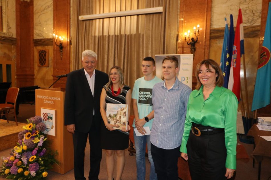 GORSKI KOTAR – Među ovogodišnjim državnim prvacima školskih natjecanja koje je za ostvaren uspjeh nagradila i Županija, troje je goranskih učenika i njihovi mentori. Svi nagrađeni su iz Čabra i to Andrija Janeš učenik 2. razreda i Jan Kocet učenik 3. razreda i njihova mentorica Valentina Tomac iz Srednje škole Vladimir Nazor za osvojeno prvo mjesto na natjecanju Opisujemo sustave te učenica 8. razreda OŠ Petar Zrinski Iris Malnar i njena mentorica Tanja Šebalj – Kocet za osvojeno prvo mjesto na Smotri učeničkih zadruga – natjecateljska kategorija Istraživački radovi. Svečano primanje učenika i mentora osnovnih i srednjih škola te učeničkih domova koji su u školskoj 2021/2022 godini osvojili prvo mjesto na državnim natjecanjima, upriličeno je u Mramornoj dvorani Pomorskog i povijesnog muzeja Hrvatskog primorja Rijeka. Tom prigodom župan Zlatko Komadina pozdravio je više od 40 učenika i njihovih mentora s područja cijele županije te je zajedno sa zamjenicom župana Marinom Medarić i resornom pročelnicom Editom Stilin čestitao na ostvarenim rezultatima i uručio im prigodne darove.