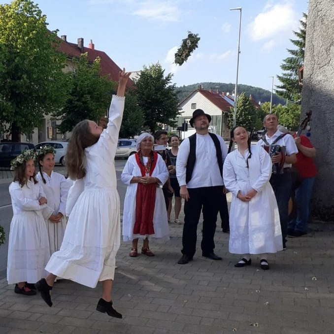 DELNICE – Tradicionalno na Ivanje i ove godine u Delnicama je u organizaciji Etno-udruga ”Prepelin’c” održana smotra starih goranskih ivanjskih običaja ”Ivajnske kresnice”. Pred hišom Rački u Delnicama okupljene “kresnica” bacale su vijenčiće od ivančica na drveni krov te najstarije delničke kuće uz glazbenu pratnju heligonkara Živka Merlea i manji tamburaški sastav, okupljen upravo za tu pučku priredbu. Ovo je 14. godina te etno smotre kojom se uprizoruje stari goranski ivanjski običaj – nekadašnje ivanjsko okupljanje djevojaka, koje bi u polju brale ivančice i plele od njih vijenčiće, misleći na neku svoju simpatiju. Pritom su pjevale stare ivanjske pjesme, a zatim bi vjenčić bacile na drveni krov kakve stare kuće u selu. Prema rednom broju krovne daske, na kojem bi se vjenčić zaustavio, tumačile su za koliko će se godina udati, istaknuo je organizator te posebne etno smotre Davor Grgurić. Istražujući puna dva desetljeća goranske narodne običaje o ovom Ivanjskom Grgurić je zabilježio kazivanja u samim Delnicama, ali i u više drugih goranskih mjesta ističući Lokve gdje su “kresnice” odjevene u bijelo prolazile mjestom u svečanoj povorci, držeći upaljene svijeće, uz neizostavne ivanjske pjesme.