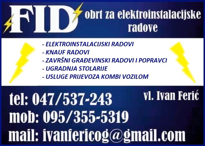 FID – obrt za elektroinstalacijske radove vlasnika Ivana Ferića nudi Vam: