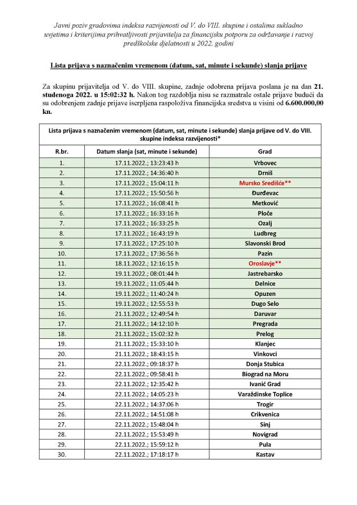 Jednostavnom provjerom liste prijava s naznačenim vremenom može se vidjeti da se Čabar NIJE niti prijavio pravovremeno na navedeni Javni poziv. Ono što se svaki puta ponavlja u ovakvim objavama je da uvijek je netko drugi krivac. Krivac se najčešće nalazi u “OPORBI” koja još od rujna ove godine ima većinu i preuzela je vlast u Gradskom vijeću. Gradonačelnik bi trebao prionuti stvarnom poslu i voditi Grad Čabar i gradsku upravu za što je i plaćen, a ne se baviti objavama poluistinitih ili neistinitih činjenica.