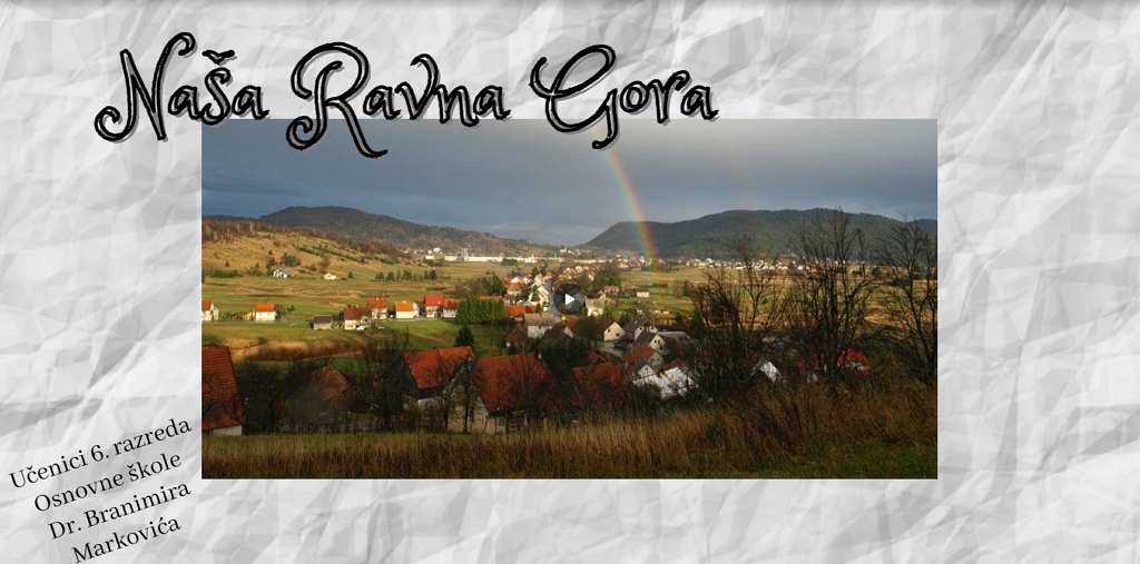 RAVNA GORA – Ravnogorski osnovci napravili su zanimljivi dokumentarni film o svome mjestu. U 43-minutnom dokumentarcu pod nazivom Naša Ravna Gora obradili su općenite podatke o svom zavičaju – zemljopisni položaj, povijest, govor, biljni i životinjski svijet, prirodne, društvene i kulturne znamenitosti te predstavili udruge koje djeluju u njihovom kraju a u čijem radu i sami sudjeluju. Film su napravili učenici šestog razreda a, kako ističu u ravnogorskoj školi Dr. Branimira Markovića, ideja je nastala na satovima hrvatskog jezika. Zadatak im je bio napraviti i održati govor o određenoj temi ili sadržaju koji mogu pronaći na području Ravne Gore. Kasnije su ti govori prerasli u video uratke, a zajedno s učiteljicom Romanom Mance spojili su sve u jedan zanimljiv dokumentarni film. Promocija filma Naša Ravna Gora u školi je održana posljednji dan nastave u prvom polugodištu a kako on izgleda možete pogledati ovdje.