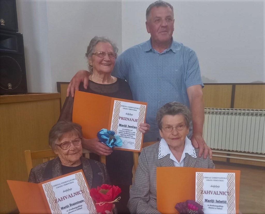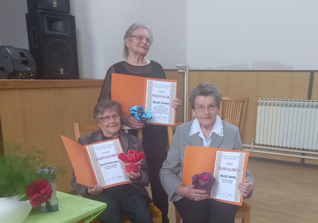 Za punih dvadeset godina članstva u Udruzi umirovljenika Grada Vrbovskog zahvalnice su uručene Mariji Štajminger i Mariji Jeletić te predsjednici koja 20 godina vodi Udrugu, Mariji Jančan.
