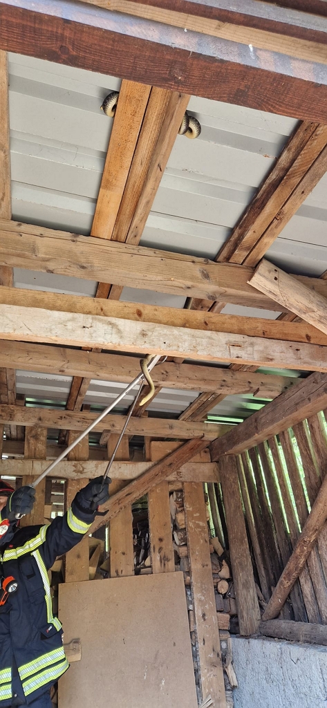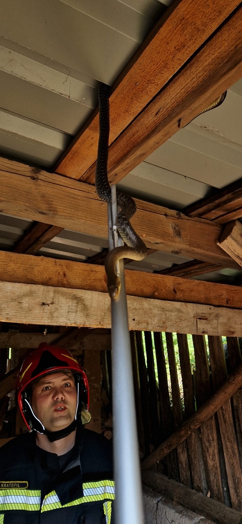 VRBOVSKO – Vrboščanski vatrogasci, prije dva dana priskočili su u pomoć sugrađanima kod uklanjanja zmija iz drvarnice. Ustrašeni vlasnici objekta kod kojih je nekoliko zmija pronašlo idealno mjesto za grijanje, na gredama ispod vrućeg limenog krova, zatražili su pomoć pozivom na 112.