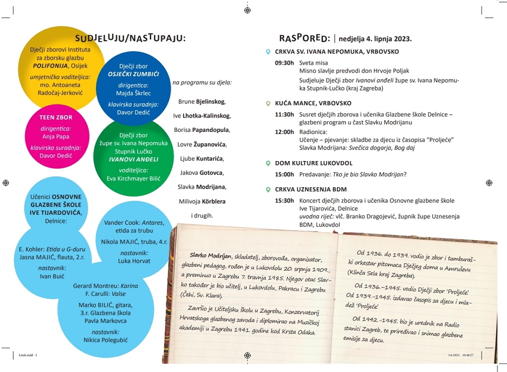 No upravo gradonačelnik Vrbovskog odlučio je to promijeniti i valorizirati ime Modrijana pokretanjem priredbe koja će nositi njegovo ime i koja će okupljati dječje zborove. Kako piše Novi list, rezultat je to suradnje Grada Vrbovskog s Evom Kirchmayer Bilić, proučavateljicom njegova rada, koja je radeći na doktorskoj disertaciji vezanoj uz djelo ovog glazbenog pedagoga došla i do njegovog rodnog Lukovdola te se upoznala s predstavnicima Grada Vrbovskog čiji je gradonačelnik Dražen Mufić rado prihvatio mogućnost suradnje pa su tako i osmišljeni prvi susreti dječjih zborova u čiju su se organizaciju rado uključile i župnici iz župa Vrbovsko i Lukovdol, don Hrvoje Poljak i vlč. Branko Dragojević, stoji u Novom listu.