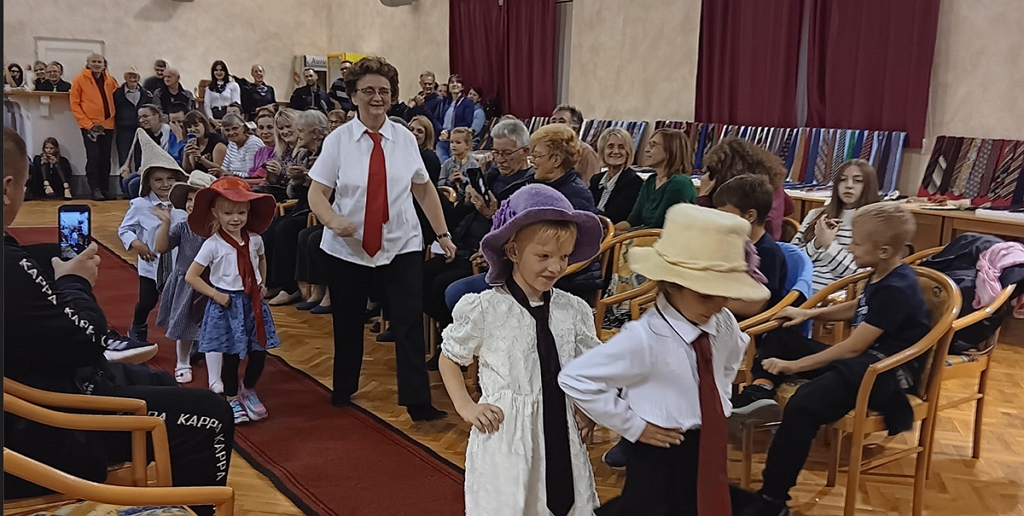 Reviju su odradili i kravate modnom pistom prošetali onako kako to rade pravi manekeni, mrkopaljski vrtićanci i osnovci, a pridružili su im se i odgajateljice učiteljice, ravnatelj, pa i načelnik.
