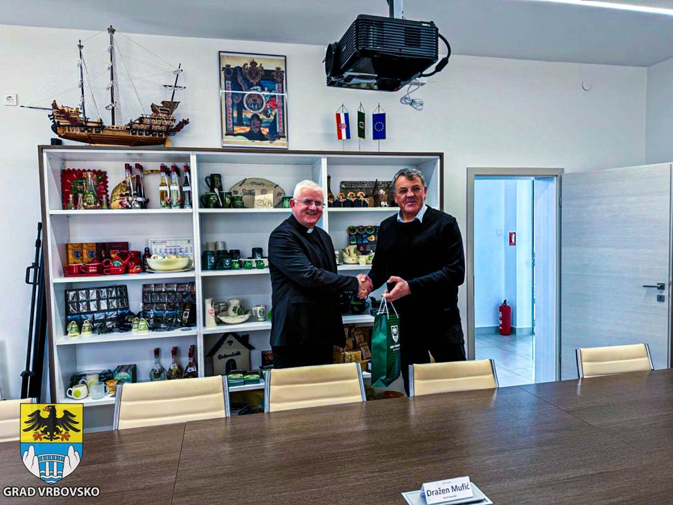 U sklopu posjeta župe Vrbovsko, sastao se i s gradonačelnikom Draženom Mufićem.