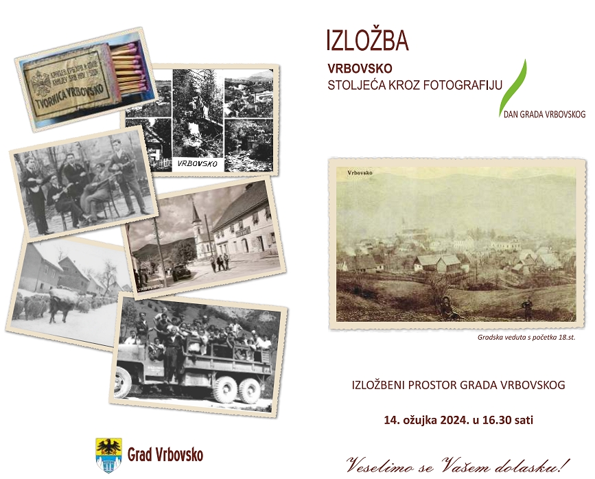 VRBOVSKO – Grad Vrbovsko poziva vas na izložbu “Stoljeća kroz fotografiju ” i degustaciju kolača “Bakine pite” koja će se povodom obilježavanja Dana Grada Vrbovskog održati 14. ožujka s početkom u 16,30 sati u Izložbenom prostoru Grada Vrbovskog.