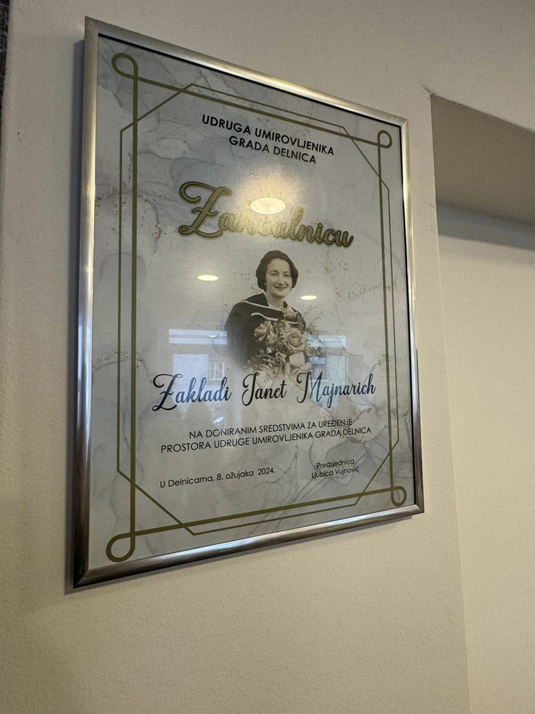 Novouređeni prostor predstavili su svečanim otvorenjem na Dan žena, a tom prilikom predsjednica Udruge umirovljenika, Ljubica Vujnović uputila je zahvalu Zakladi i to Vilimu Smiljaniću i Tomu Duševiću, izvršiteljima oporuke Janet Majnarich, Igoru Plešeu posredniku u realizaciji donacije te članovima koji su odradili brojne dobrovoljne radne akcije za preuređenje i obnovu tog nekoć zapuštenog i devastiranog prostora.