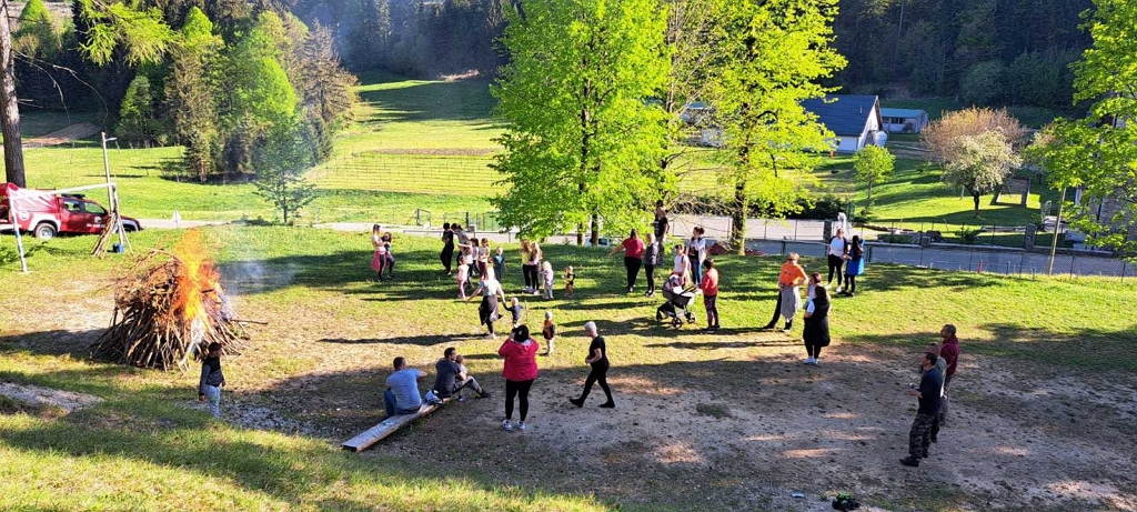Dan uoči praznika rada, okupili su se na igralištu iza dvorca i u društvu mama (članica DND-a Ravna Gora, ogranak Stara Sušica) i tata naučili stare običaje.