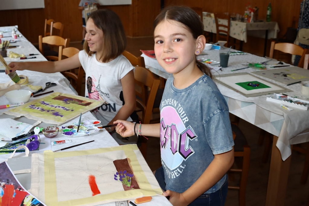 Drugi dan je počeo sa oslikavanjem platnenih torbi na likovnoj radionici za najmlađe, također pod vodstvom Novice Vučinića.