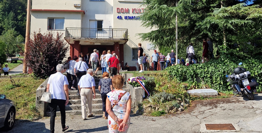 Ispod spomen-ploče položeni su vijenci i zapaljene svijeće u spomen na 29. kolovoz 1944. godine kada je formirana 43. istarska divizija čiji su se borci nadahnuti slobodarskim težnjama junački borili za slobodu i priključenje Istre Jugoslaviji.