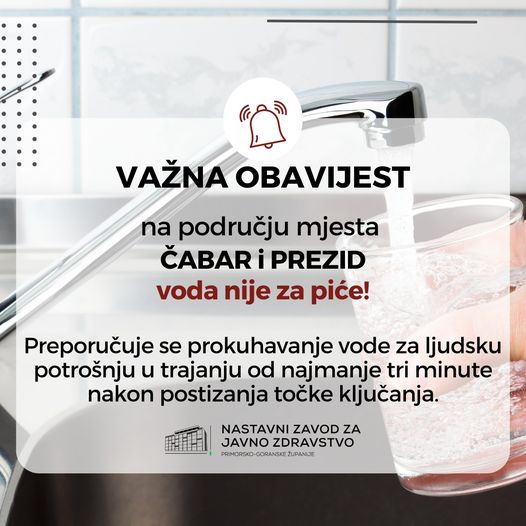 ČABAR – Nakon Moravica, voda nije za piće niti u Čabru i Prezidu.
