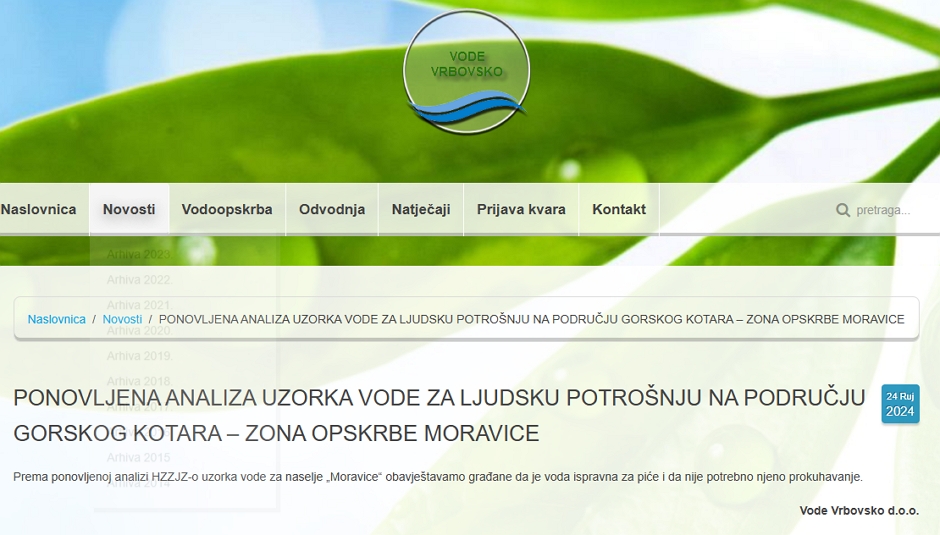 Javljaju to danas Vode Vrbovsko, u čijoj obavijesti stoji : Prema ponovljenoj analizi HZZJZ-o uzorka vode za naselje „Moravice“ obavještavamo građane da je voda ispravna za piće i da nije potrebno njeno prokuhavanje.