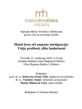DELNICE – U organizaciji delničkog ogranka Matice hrvatske, u četvrtak je u Delnicama otvorenje izložbe, Matoš kroz oči umjetne inteligencije: Vizije prošlosti, slike budućnosti.
