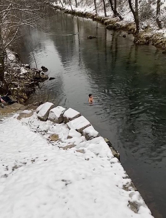 VRBOVSKO – Gorski kotar već danima zaleđen na -2 stupnja, nimalo nije poljuljao odvažnog izletnika da nedjeljni posjet Kamačniku iskoristi i za kupanje.