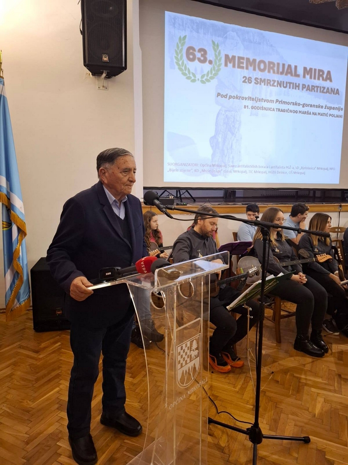 MRKOPALJ – U spomen na 26 smrznutih partizana na Matić poljani u II. svjetskom ratu, u Mrkoplju je održan 63. Memorijal mira.
