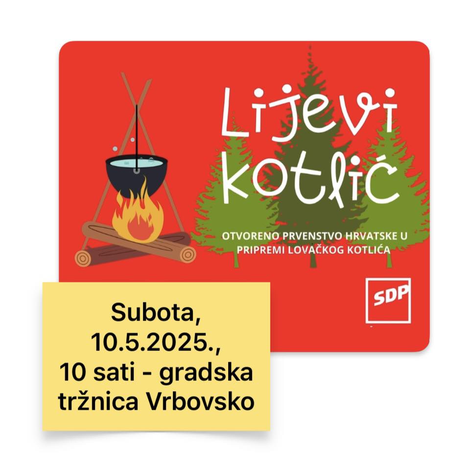 VRBOVSKO – SDP-ovci pozivaju, na svoj tradicionalni Lijevi kotlić, koji će se održati na prostoru gradske tržnice u Vrbovskom, u subotu 10. svibnja.