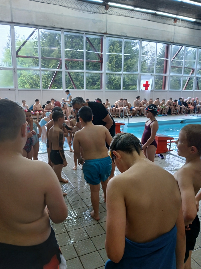 DELNICE – Rekordan broj goranskih osnovaca, njih čak 111, u četvrtak je, uživalo na delničkom bazenu i snage odmjerilo u plivanju.