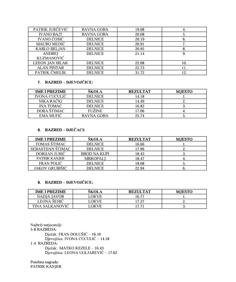 Rekordan broj mladih goranskih plivača, na tom pojedinačnom prvenstvu, bili su učenici iz 6 osnovnih škola iz Fužina, Lokvi, Mrkoplja, Ravne Gore, Delnica i Broda na Kupi.