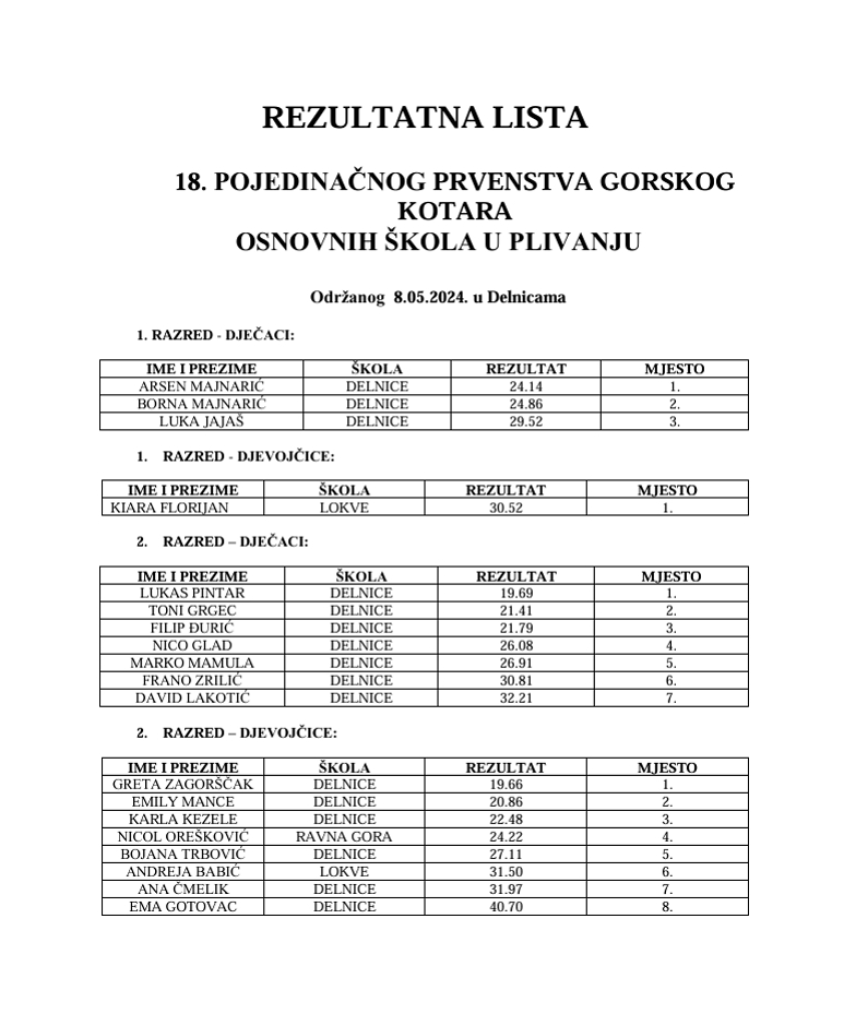 Okupili su se i natjecali na 18. pojedinačnom prvenstvu Gorskog kotara osnovnih škola u plivanju, koje su zajednički organizirali Gradsko društvo Crvenog križa Delnice, OŠ Frana Krste Frankopana, Brod na Kupi i Školsko sportsko društvo KUPA.