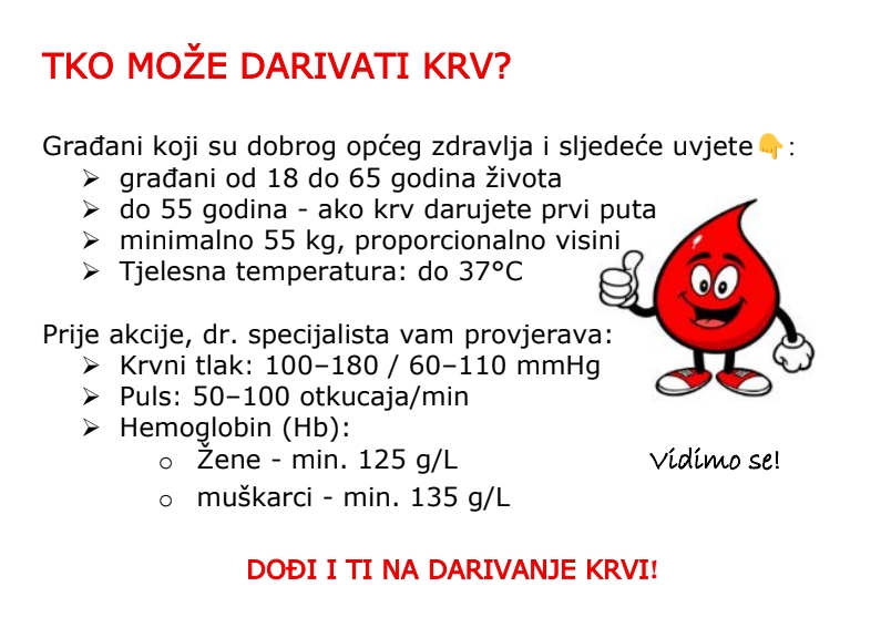 I ovim putem, Crveni križ Delnice, poziva darivatelje da se odazovu u što većem broju uz preporuke, kako postati darivatelj i tko sve može darovati krv.