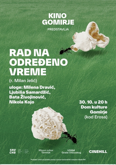 U četvrtak 30. listopada, u 20:00 sati, u Domu kulture u Gomirju održat će se projekcija filma ”Rad na određeno vreme” redatelja Milana Jelića u kojem glavne uloge igraju Milena Dravić, Ljubiša Samardžić, Bata Živojinović i Nikola Kojo.