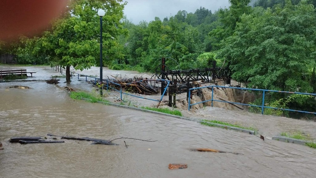 POSLJEDICE OBILNIH PADALINA : Uz odrone, nanosi granja i trupaca umalo su urušili branu u centru Čabra